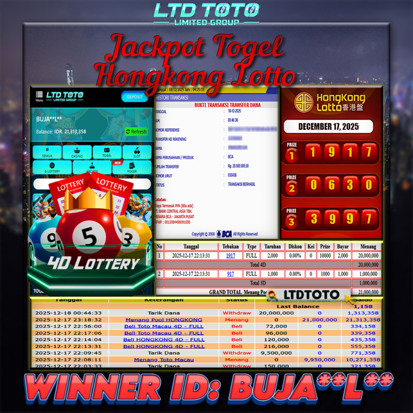 LTDTOTO JACKPOT TOGEL HONGKONG LOTTO RP 20.000.000 KAMIS 18 DESEMBER 2025