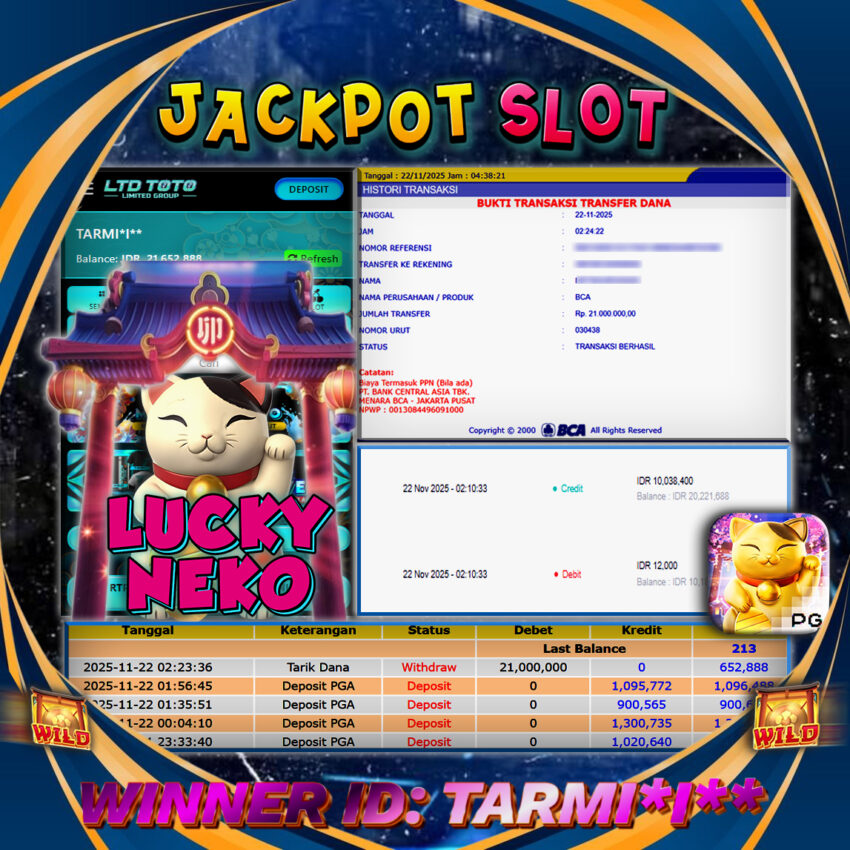 LTDTOTO JACKPOT LUCKY NEKO RP 21.000.000 SABTU 22 NOVEMBER 2025