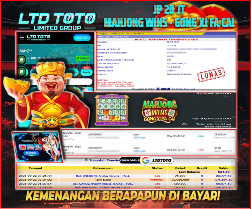 LTDTOTO JACKPOT SLOT MAHJONG WINS GONG XI FA CAI RP 20.000.000 SENIN 22 SEPTEMBER 2025