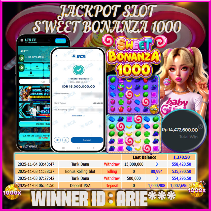 LTDTOTO JACKPOT SWEET BONANZA 1000 RP 15.000.000 DI BAYAR LUNAS!